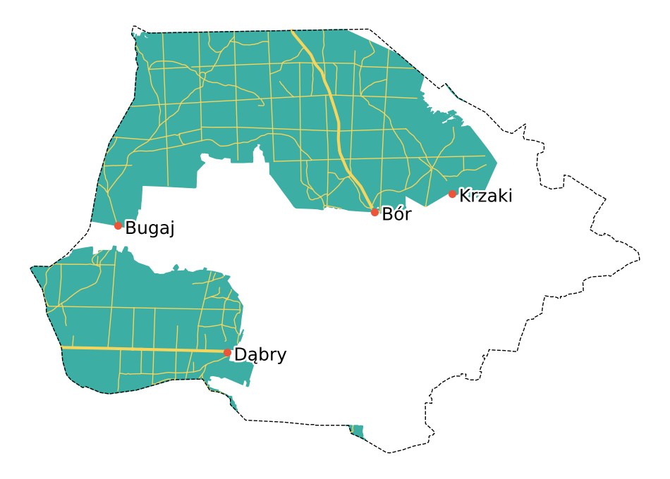| powierzchnia obszarów leśnych $[km^2]$ | 21.82 |