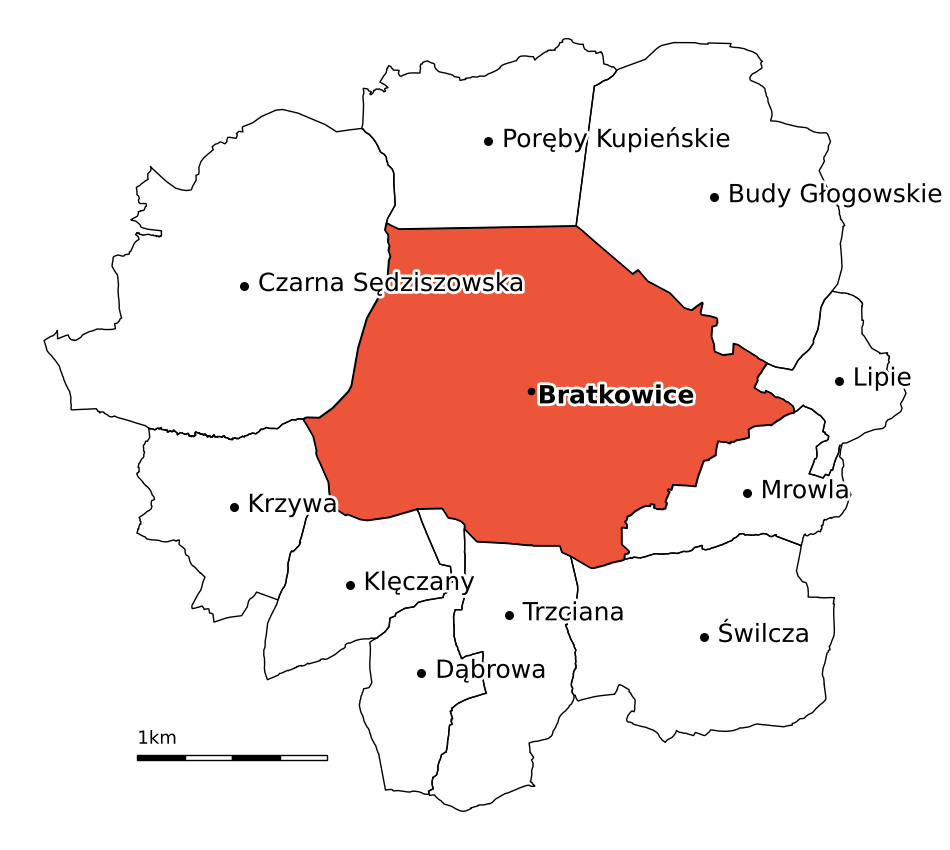 Zapamiętałem te słowa po dziś dzień. Naszedł czas aby się trochę zrehabilitować i zastosować w praktyce przytoczone słowa. Daleko mi jednak myślami do Japonii, więc jako cel moich rozważań obrałem moje ukochane, rodzinne Bratkowice. A więc spójrzmy na mapę Bratkowic i opiszmy co widzimy. Wykorzystajmy przy tym to wszystko co dają nam nowoczesne technologie związane z systemami informacji geograficznej (eng. Geographic Information System, GIS).