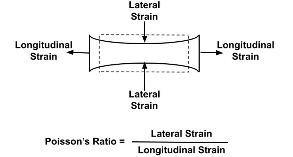 In practical terms, materials like rubber typically have higher Poisson's ratios, indicating a significant change in width when stretched. Metals usually have lower Poisson's ratios, indicating minimal changes in width during stretching or compression.