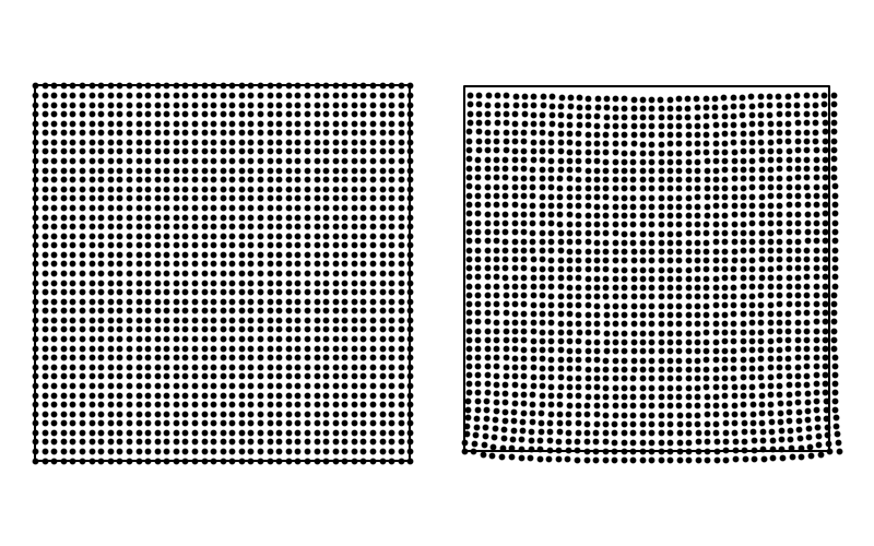 $$\ss = \matt{ \sigma_{11} }{ \sigma_{12} }{ \sigma_{21} }{ \sigma_{22} }\quad \rightarrow \quad \ss = \matt{ \sigma_{1} }{ 0}{ 0 }{ \sigma_{2}}$$W pierwsze kolejnosci obliczenia zostały przeprowadzone dla tarczy w kształcie kwadratu
