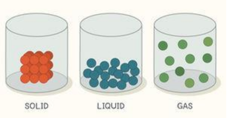 In a solid, molecules are packed together, and it keeps its shape. Liquids take the shape of the container. Gases spread out to fill the container.