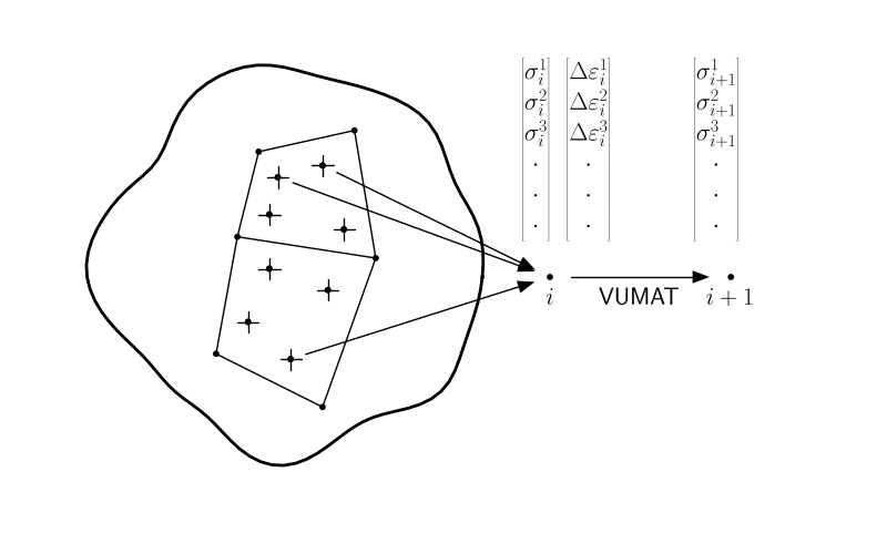 • will be called at all material calculation points of elements for which the material definition includes a user-defined material behavior;