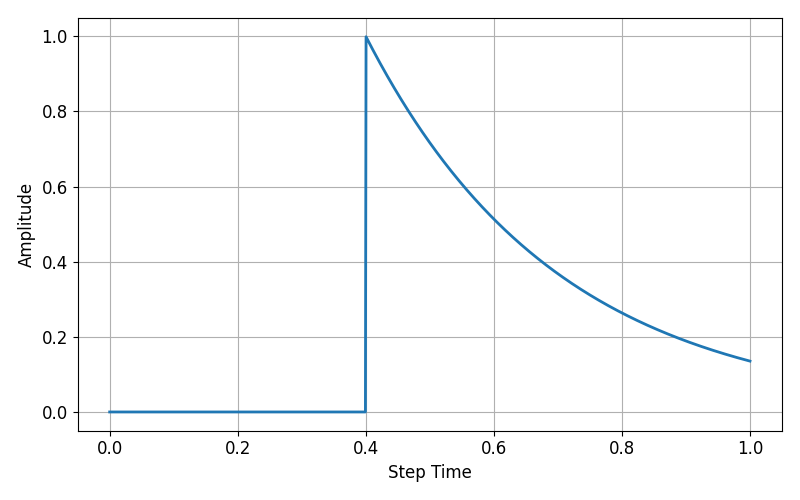 $$a = A_0 + A\exp\left( -(t-t_0)/t_d\right) \quad \text{for} \quad t \geq t 0$$ $$a = A_0 \quad \text{for} \quad t < t_0$$