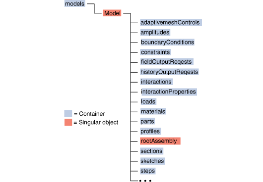 • Container - is an object that contains objects of a similar type. A container in the Abaqus object model can be either a repository or a sequence.