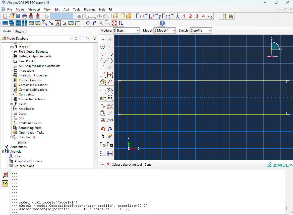 sketch.rectangle(point1=(-5.0, -1.0),point2=(5.0, 1.0))