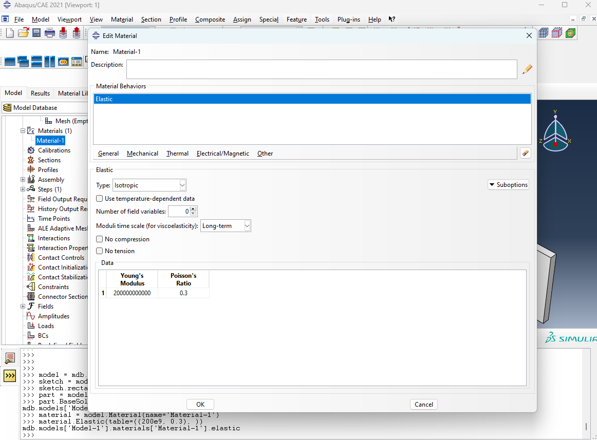 Programming with the Abaqus Scripting Interface is straightforward and logical. In the first step we need to import modulus.