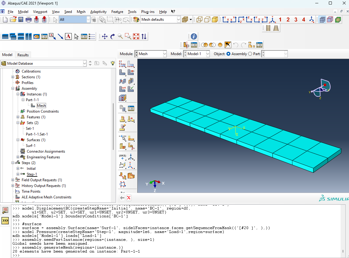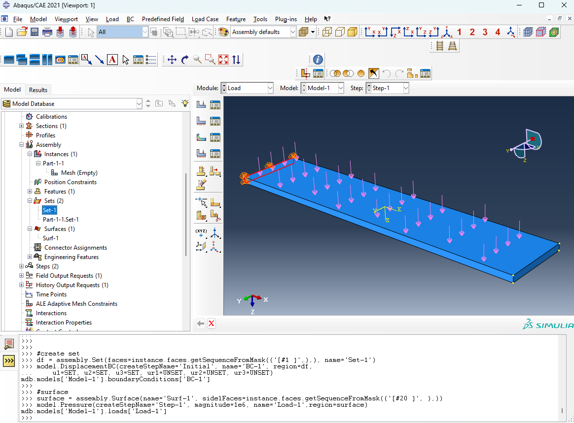 model.Pressure(createStepName='Step-1', magnitude=1e6, name='Load-1',region=surface)