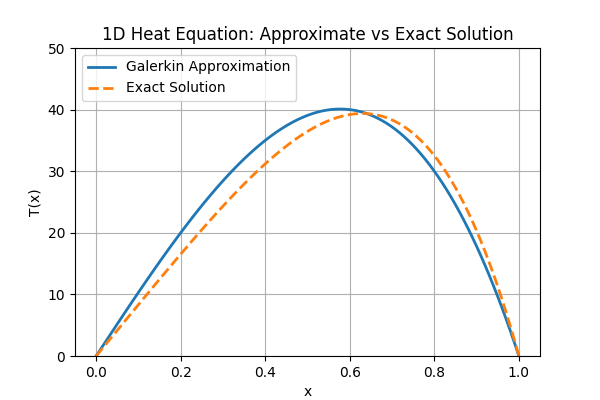$$T'(x) = a_1 N_1(x) = a_1 x(1-x^2)$$Substituting this approximation into the governing differential equation, the \textbf{residual} becomes