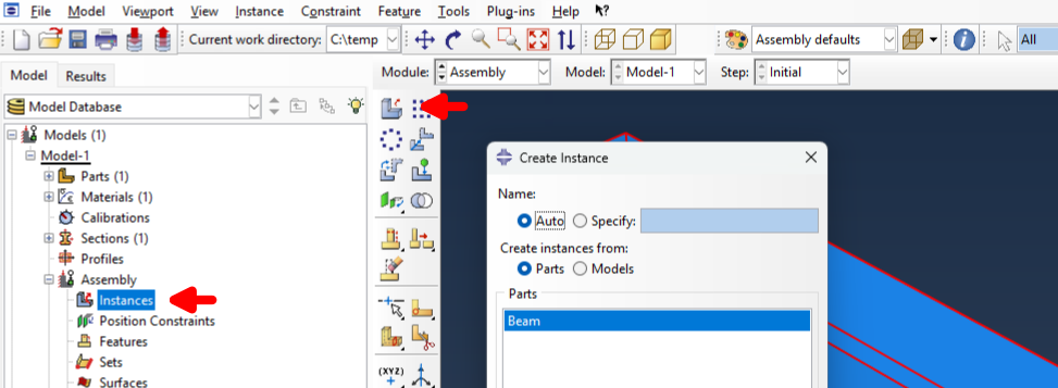 W tym zadaniu używamy jednej instancji belki. W Model Tree rozwiń Assembly i kliknij dwukrotnie Instances lub kliknij po uprzedmin zmaine modułu na Assembly w ikonę Create Instance