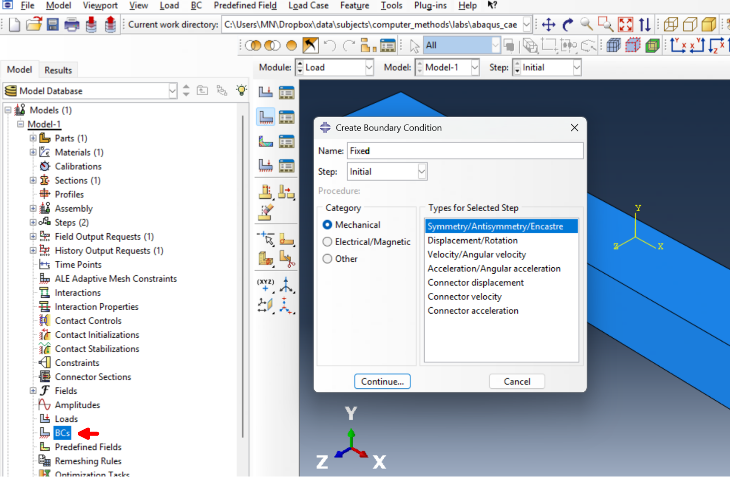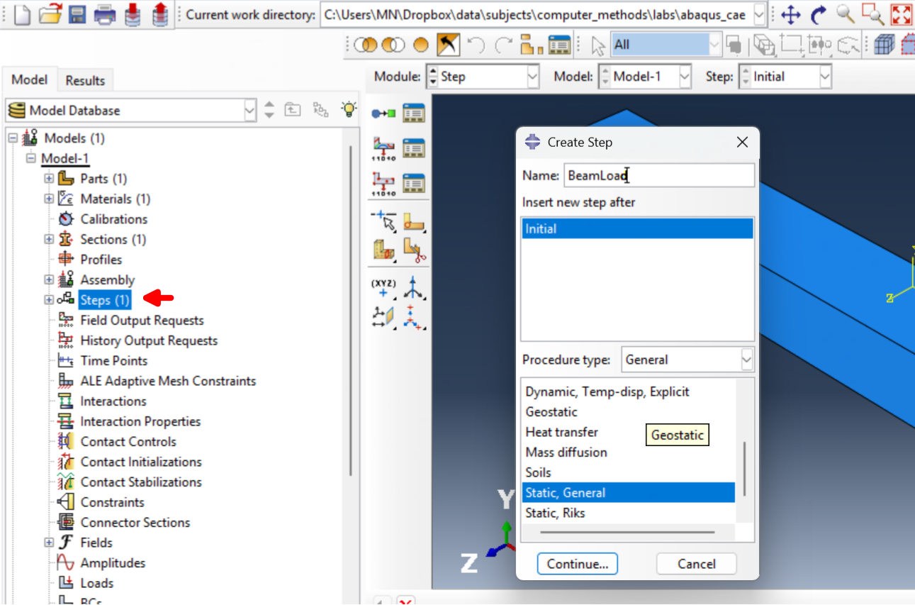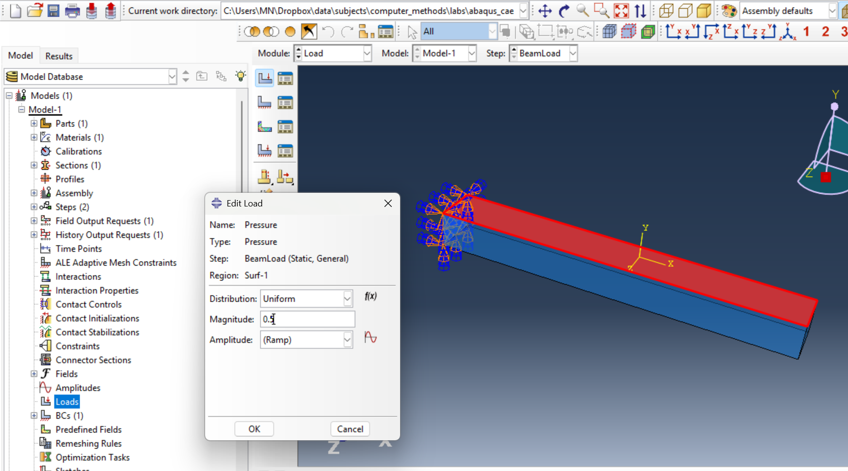 • Description: Cantilever beam tutorial - ten tekst pojawi się podczas wizualizacji