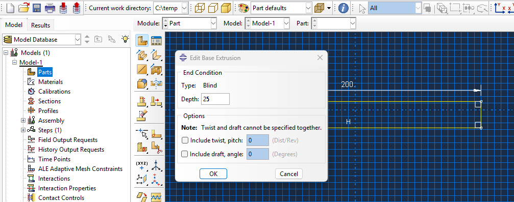 • W oknie Edit Base Extrusion usuń domyślną wartość i wpisz: 25.0