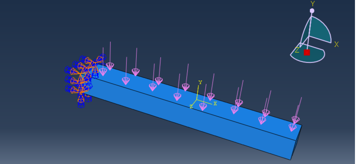 Na górnej powierzchni pojawią się strzałki (obciążenie w dół). Obciążenie jest aktywne (widoczne) tylko w kroku BeamLoad