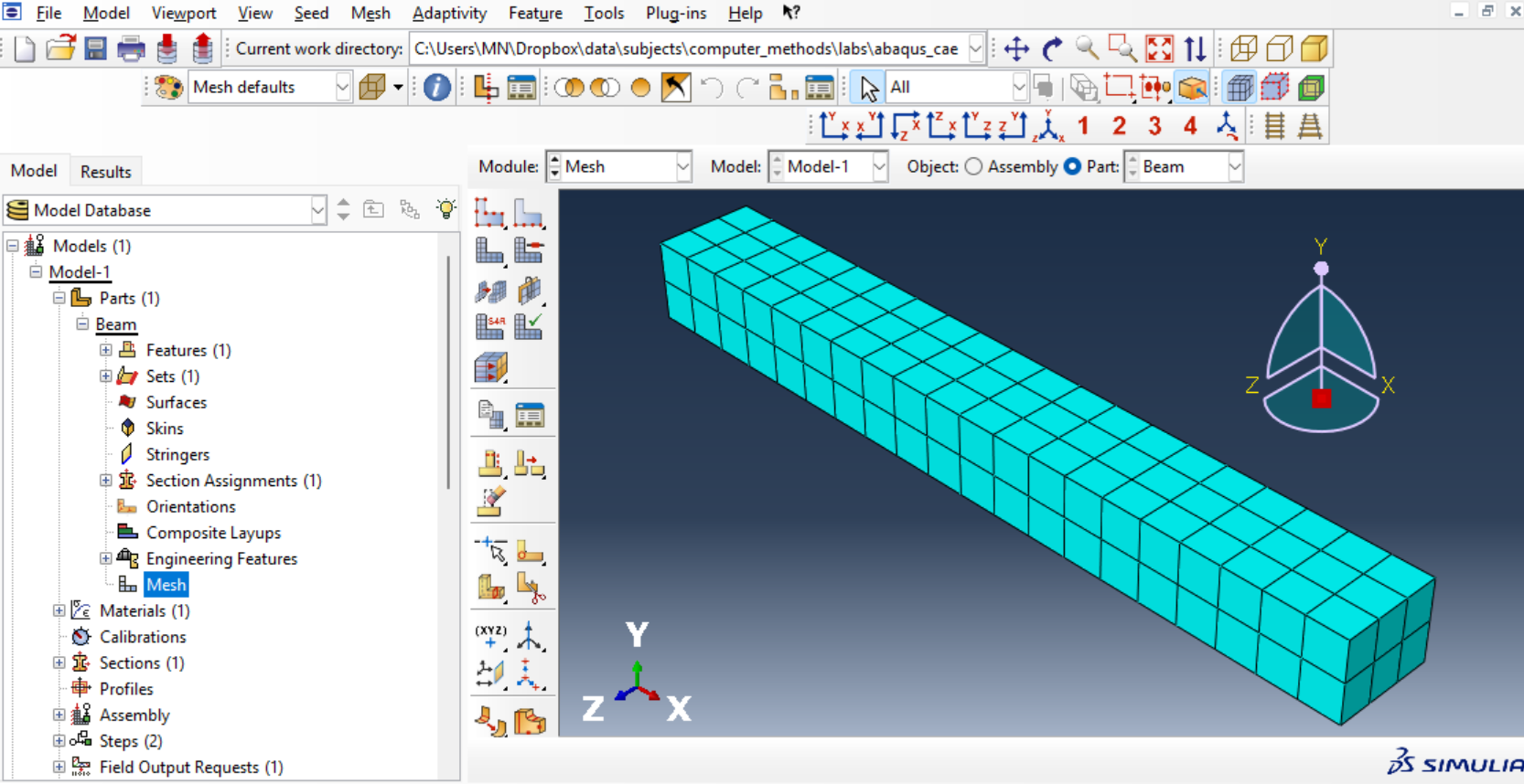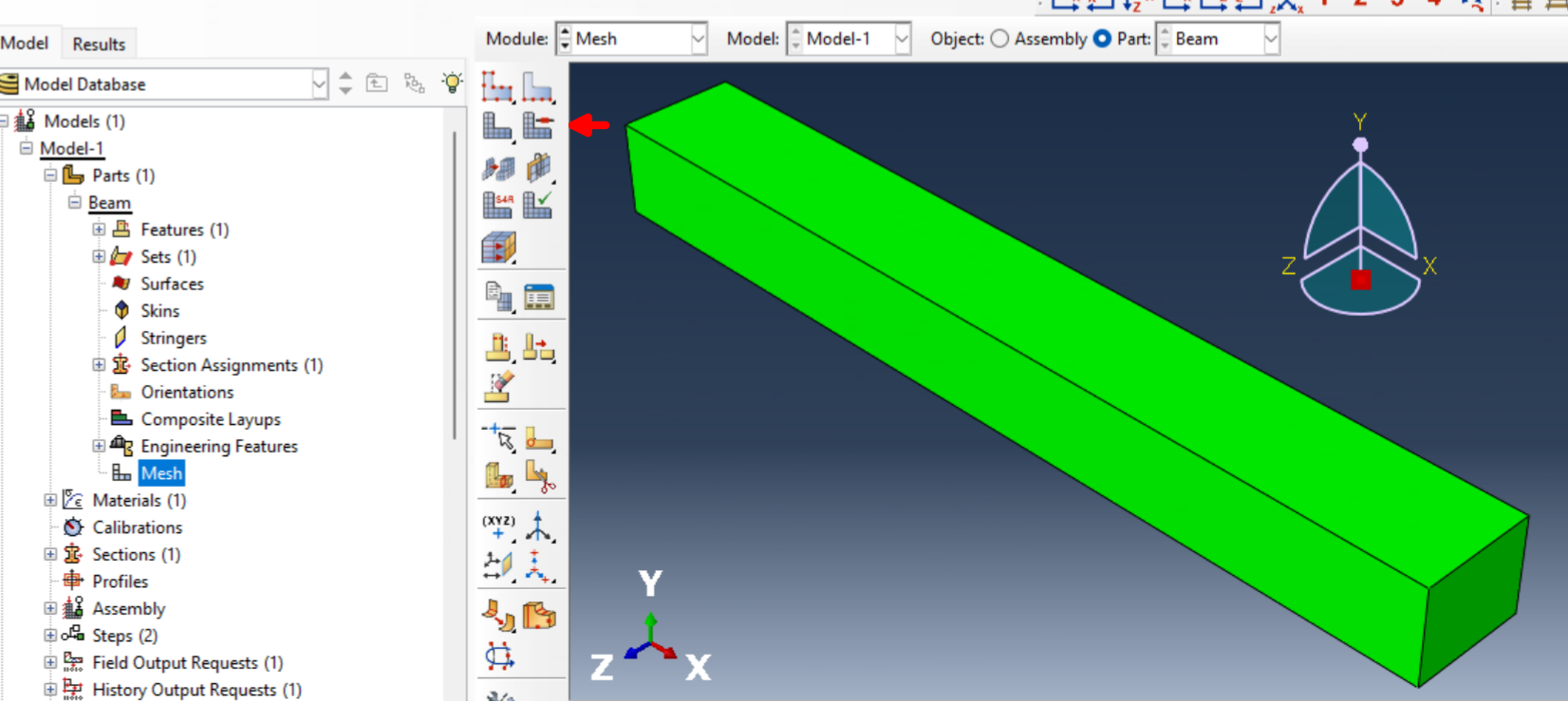W Model Tree: klikamy dwukrotnie na Parts → Beam → Mesh