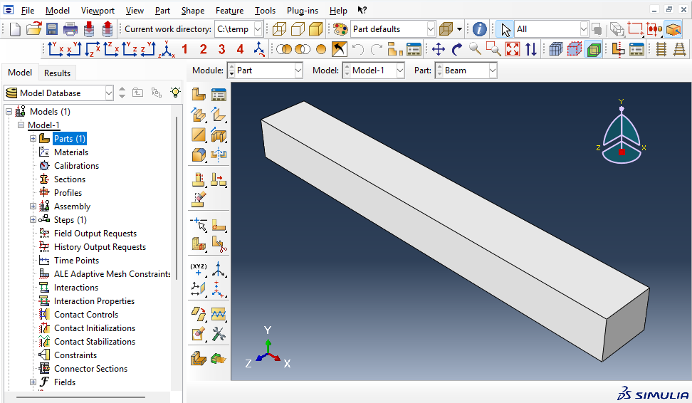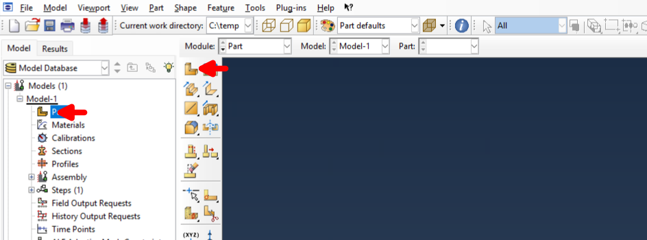 • W drzewie modelu Model Tree kliknij dwukrotnie Parts lub w jednokrotnie w Panelu narzędzi.