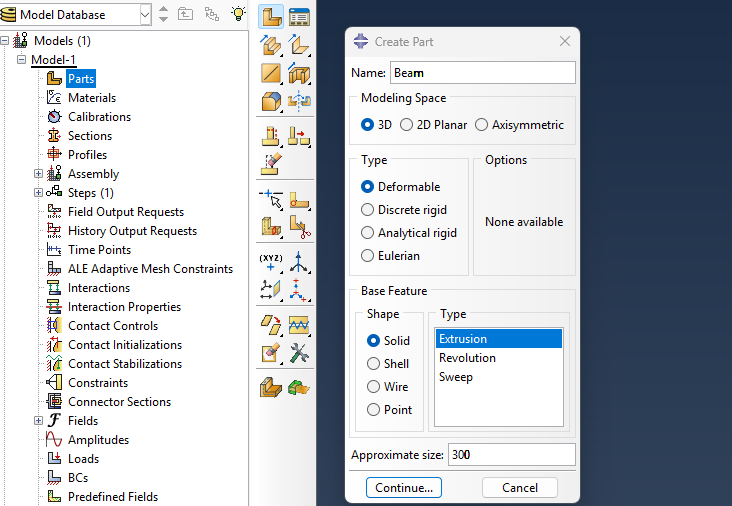 Kliknij Continue; W oknie Edit Section wybierz Material: Steel (domyślnie wybrane); Kliknij OK