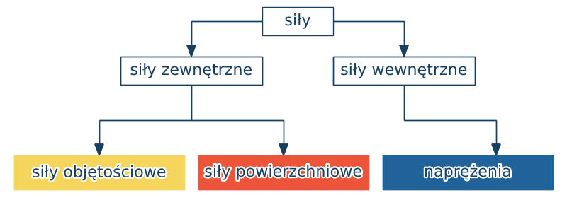 • siły wewnętrzne – oddziaływanie cząstek ciała na siebie wzajemnie.
