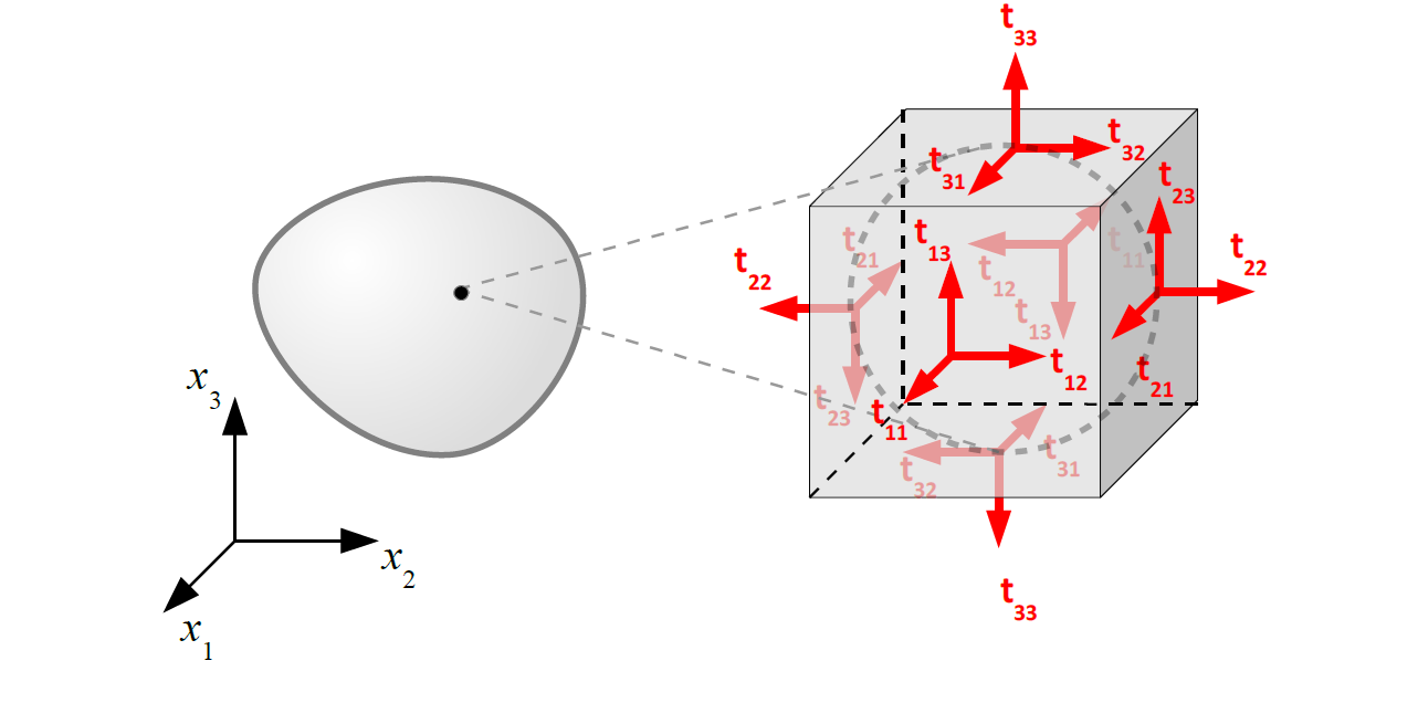 $$\t(\n) = \ss^T\n, \qquad t_i = \sigma_{ji} n_j$$gdzie $\ss$ nazywamy tensorem naprężenia.