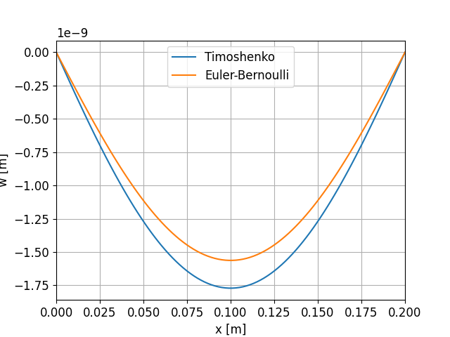 $$\dd{^2}{x^2}\left[ EI \dd{\phi(x)}{x}\right] = q(x)$$ $$\dd{w(x)}{x} = \phi(x) - \cfrac{1}{\kappa G A} \dd{}{x}\left[ EI \dd{\phi(x)}{x}\right]$$gdzie $q(x)$ to funkcja opisujące obciążenie belki, $E$ to moduł Younga, $G$ - moduł ścinania, $I$ moment bezwładności, $\kappa$ - współczynnik korekcyjny.