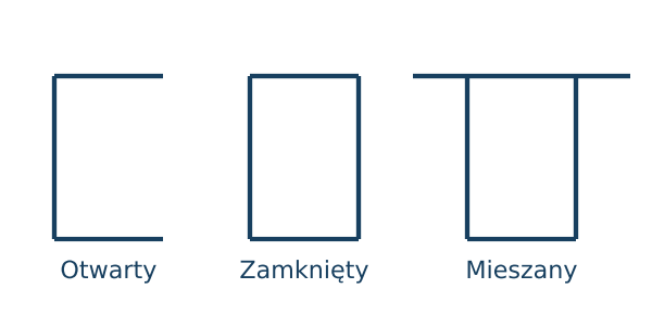 • otwarte - czyli takie których linię środkową możemy opisać grafem drzewa