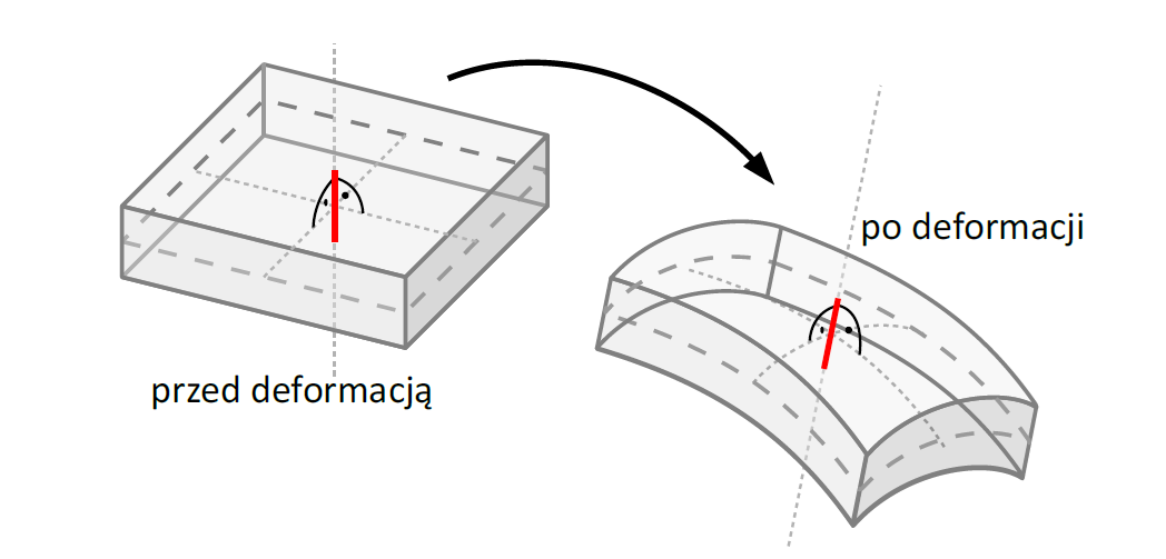 pozostaje prosty i prostopadły do zdeformowanej powierzchni środkowej płyty