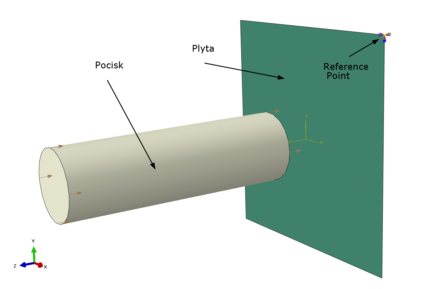 Celem ćwiczenia jest przeprowadzenie analizy numerycznej procesu deformacji pocisku uderzającego w sztywną płytę. Każdy student powinien samodzielnie przyjąć kształt pocisku oraz jego parametry geometryczne. Płyta będzie modelowana jako ciało sztywne, natomiast pocisk jako ciało podatne na odkształcenia. W tym konkretnym przypadku będzie to materiał sprężysto-plastyczny. Warunki brzegowe analizy obejmują: