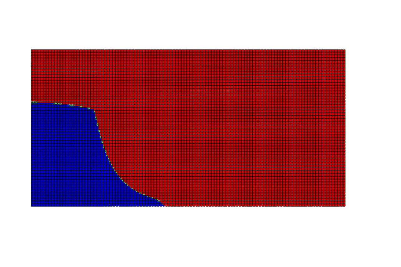 • Używając narzędzi Partition Edge, Partition Cell wykonujemy partycję naszego parta tak, aby wydzielić obszar zajmowany przez wodę w pierwszej chwili czasu.