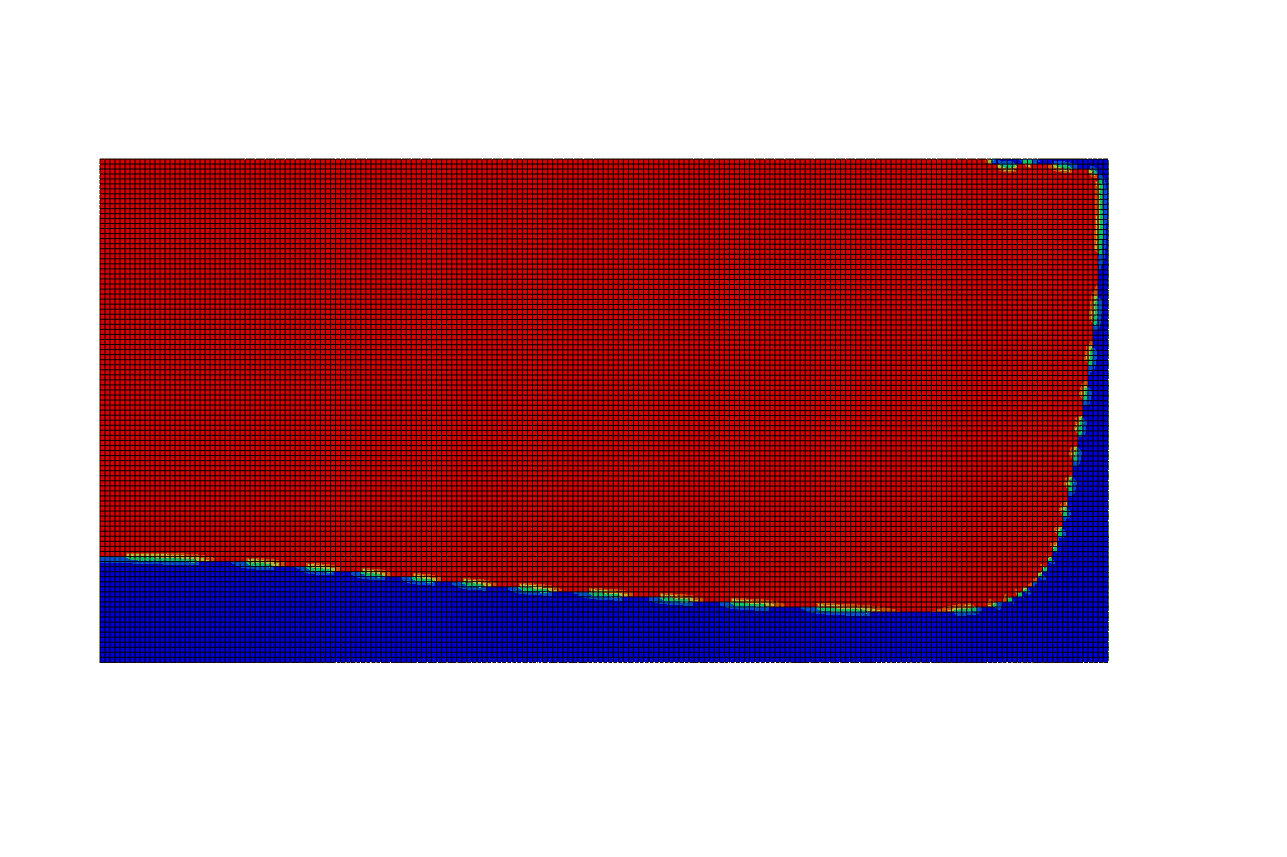 Obszar (pojemnik) w którym może znajdować się płyn. Kolorem czerwonym oznaczono początkowy obszar zajmowany przez płyn.