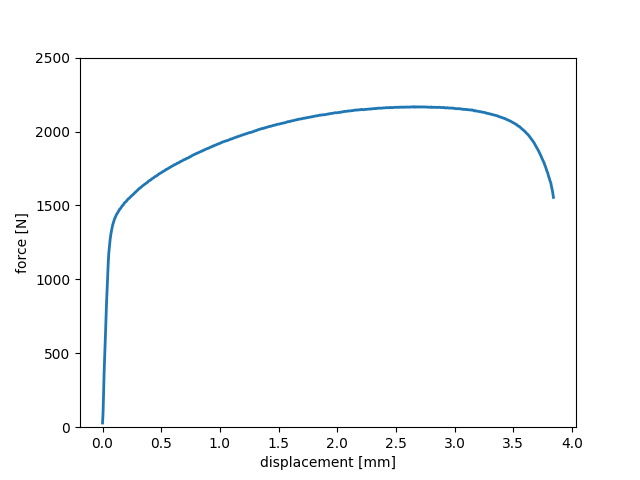 Na bazie danych eksperymentalnych należy wyznaczyć moduł Younga oraz krzywą wzmocnienia plastycznego - moduł Calibration