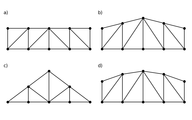 Poniżej zamieszczone są najcześciej spotykanie przykłady skratowań przęsła mostu. Pręty kratownicy muszą tworzyć trójkąty aby konstrukcja nie była chwiejna.
