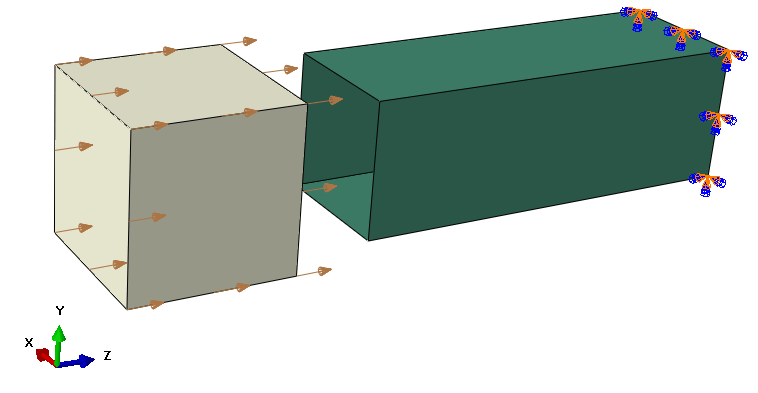 Zadanie polega na przeprowadzeniu analizy deformacji profili cienkościennego pod wpływem uderzenia. Profil modelujemy używając elementów powłokowych. Zakładamy, że element który uderza w profil jest ciałem, które również może się deformować. W kroku początkowym zakładamy rozkład pola prędkości przypisany do elementu uderzającego. Profil utwierdzony jest na jednym końcu.