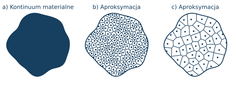 Kontinuum materialne składa się z nieskończonej liczby punktów które nazywać będziemy punktami materialnymi. Istnieje wzajemnie jednoznaczne odwzorowanie między cząsteczkami ciała a punktami materialnymi.